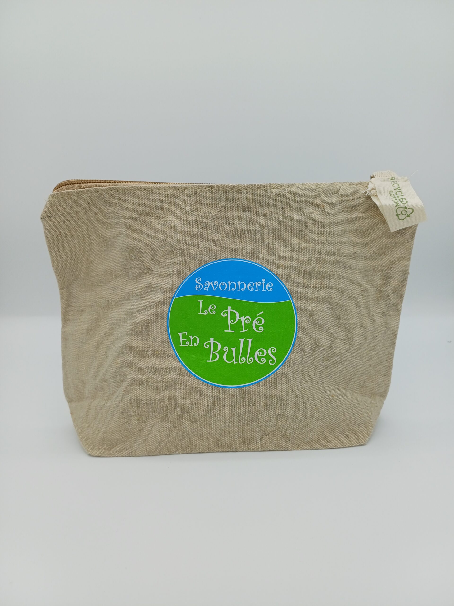 Voici une pochette trousse en coton recyclé (24 cm x 17 cm x 6 cm)